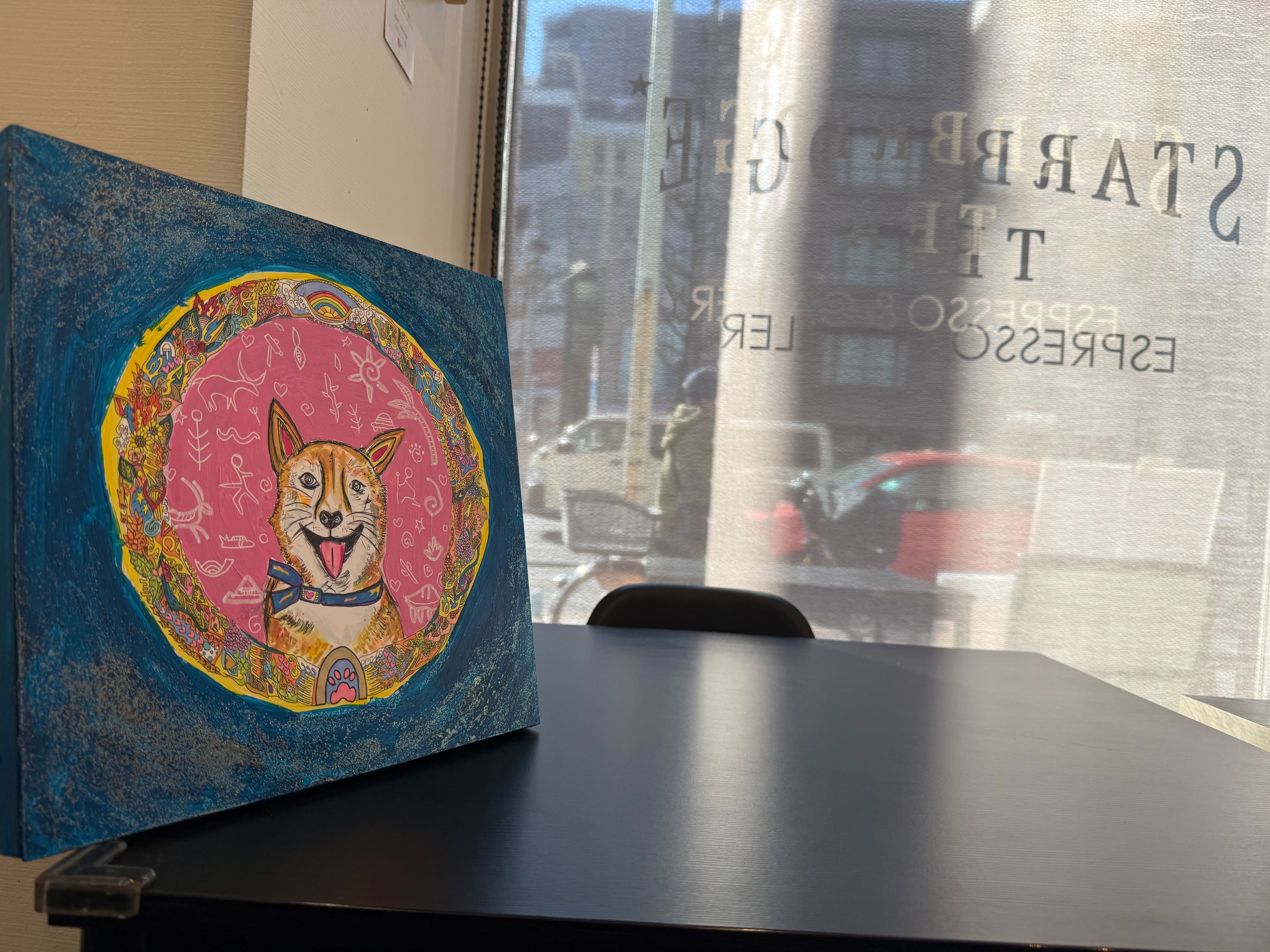 中央に描かれた犬は、